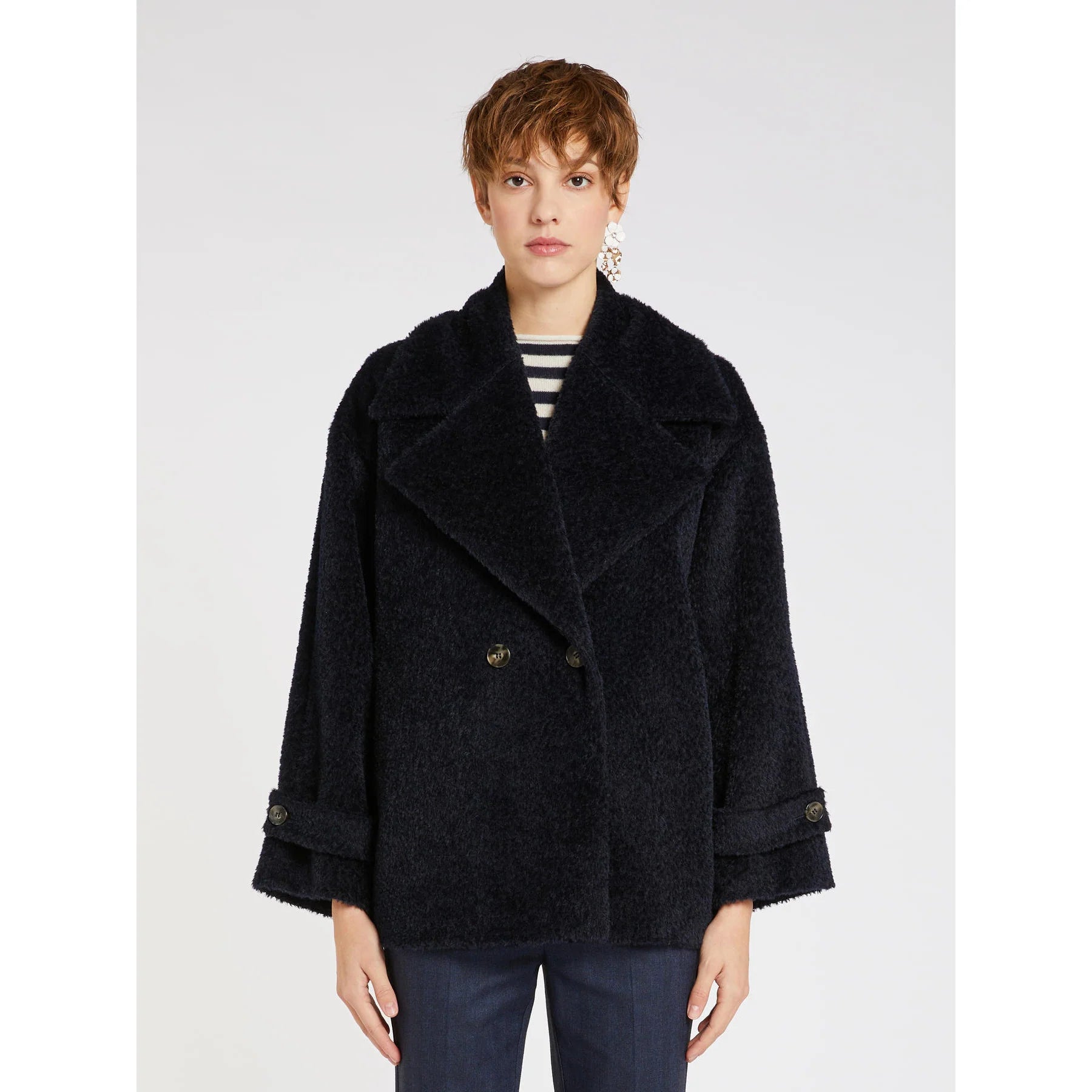Elevate your winter wardrobe with the MARELLA EMILIA coat, crafted from a luxurious blend of 52% virgin wool and 48% alpaca. This sophisticated piece combines warmth and softness for effortless elegance. The premium fabric composition ensures exceptional comfort and durability, making it a timeless investment for cooler seasons. Perfect for layering over casual or formal outfits, the EMILIA delivers refined style with superior insulation.