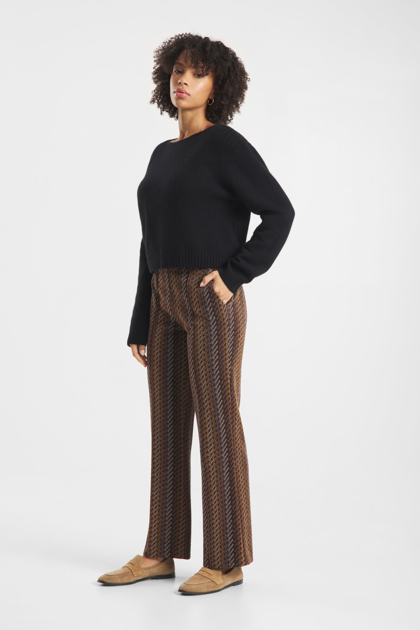 The model wears size 36 and is 1.75 m tall