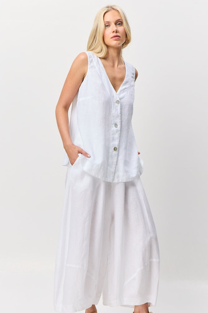 The VALIA Bastille Pant blends the natural breathability of linen with the smooth drape of viscose for a refined look and exceptional comfort. Carefully tailored, this pant offers a sophisticated silhouette that moves gracefully throughout your day, making it perfect for both professional settings and elegant casual wear. Experience timeless style with a fabric choice that feels as luxurious as it looks.
