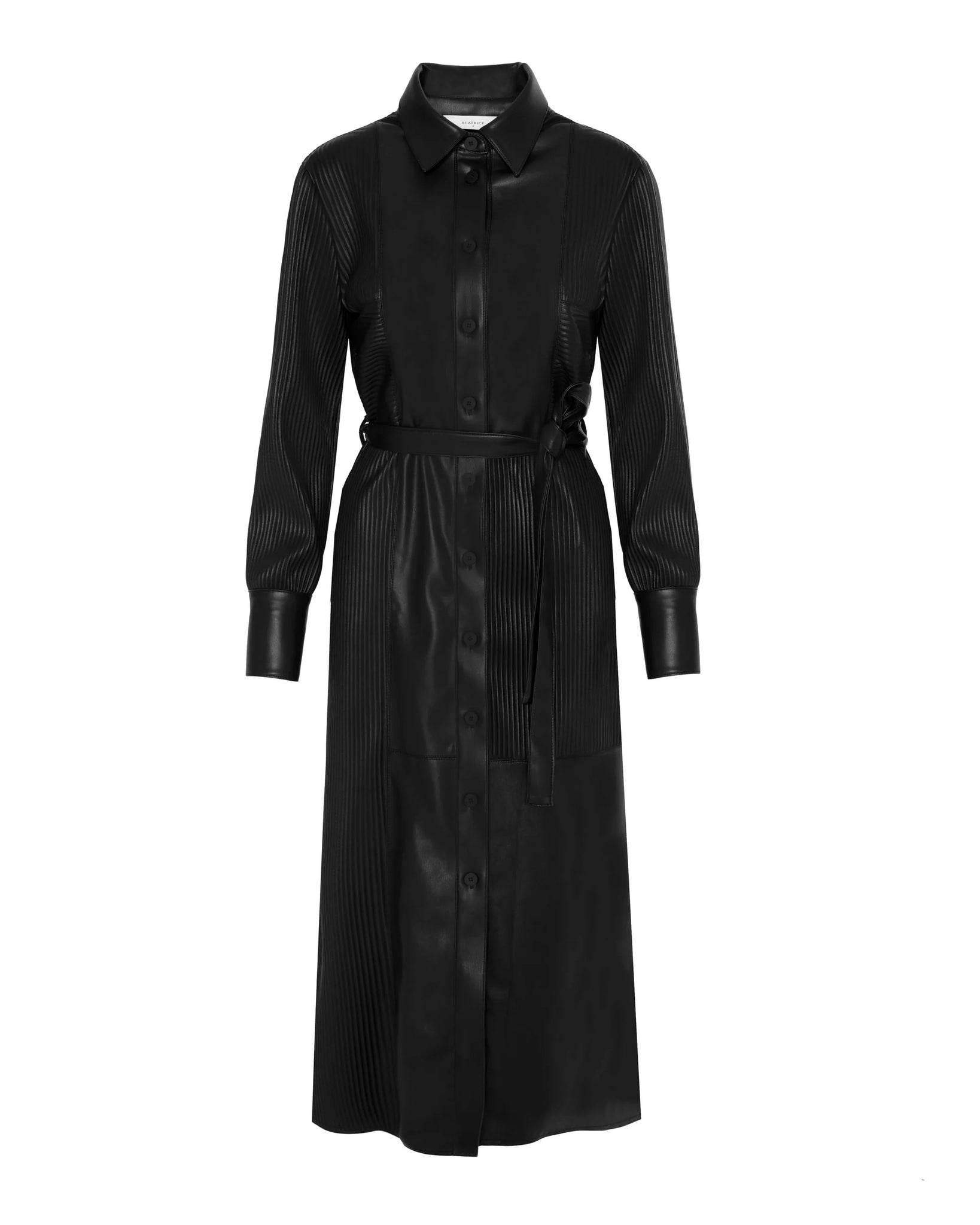 Beatrice B FAUX LEATHER CHEMISIER DRESS WITH PLEATED DETAILS