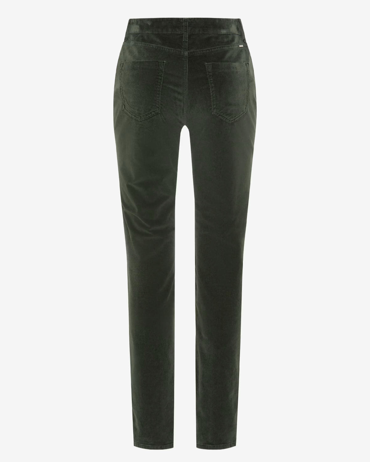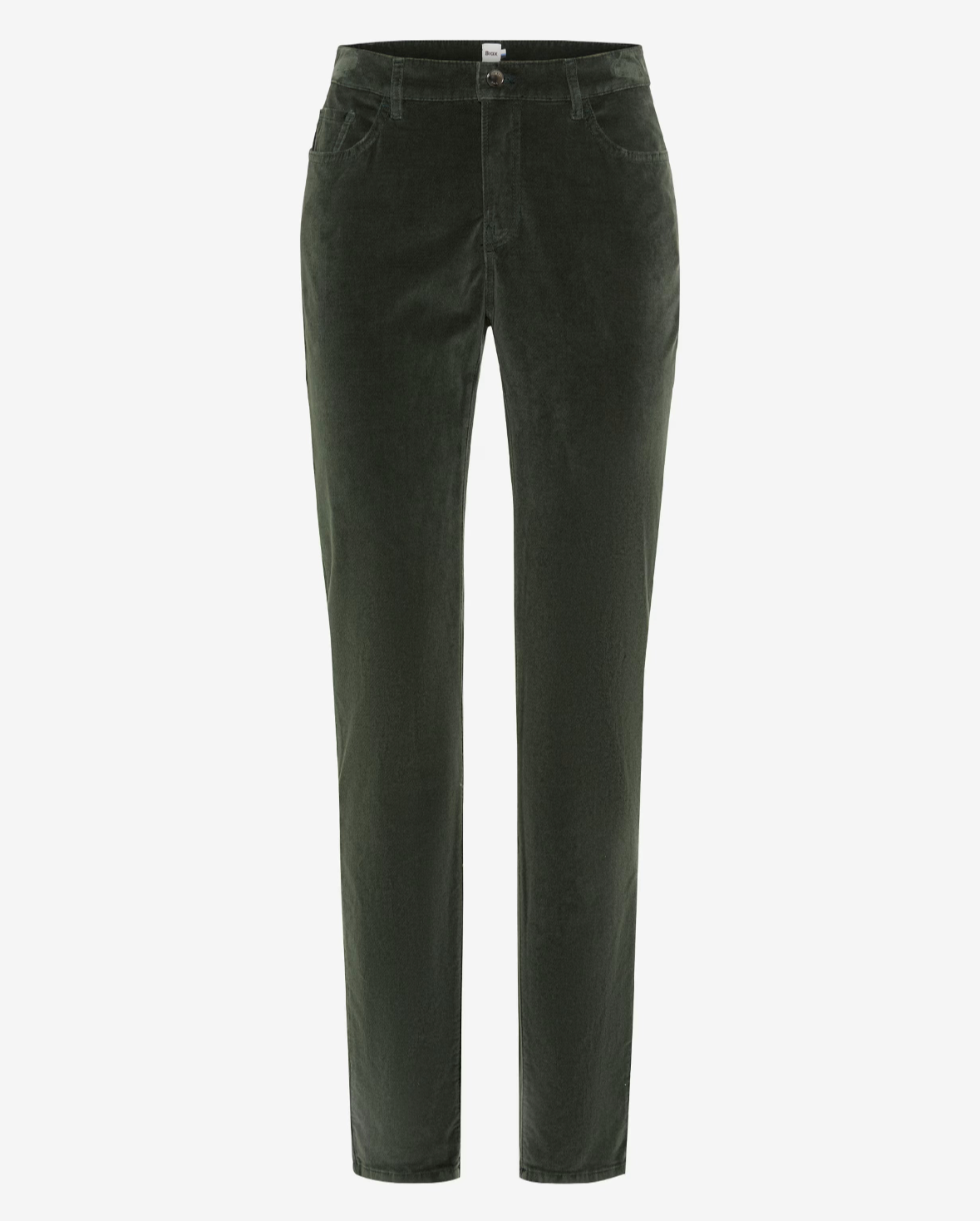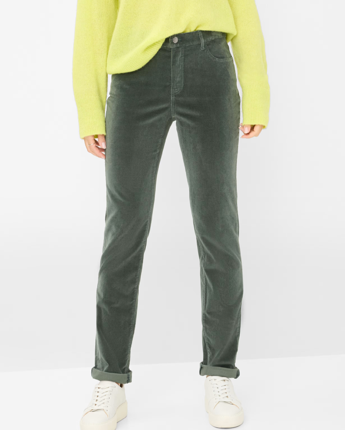 With its harmonious color scheme, the corduroy pants in the MARY style are a true must-have for feminine autumn looks. The classic five-pocket pants impress with a straight silhouette and a regular rise – a cut that is timeless and comfortable to wear. Subtle back pockets, a small coin pocket, and practical side pockets complete the typical design. Visually, the five-pocket pants stand out with fine corduroy and its characteristic ribbed structure. The material is made of a soft cotton blend that gains flexibility through elastane – allowing the pants to adapt to every movement without losing shape stability. The special corduroy quality shines with vibrant color brilliance and, with its extensive color palette, offers many combination possibilities – ideal for stylish everyday outfits.