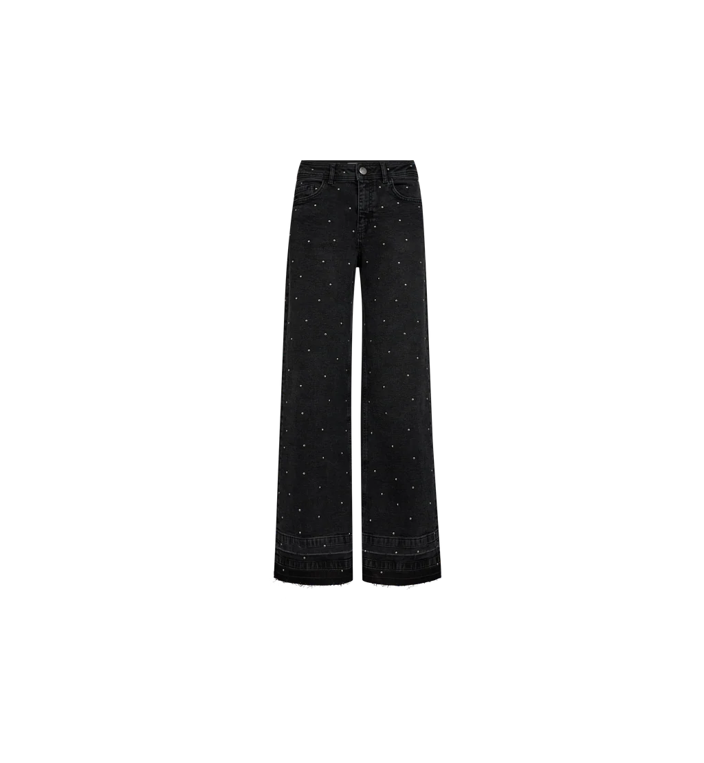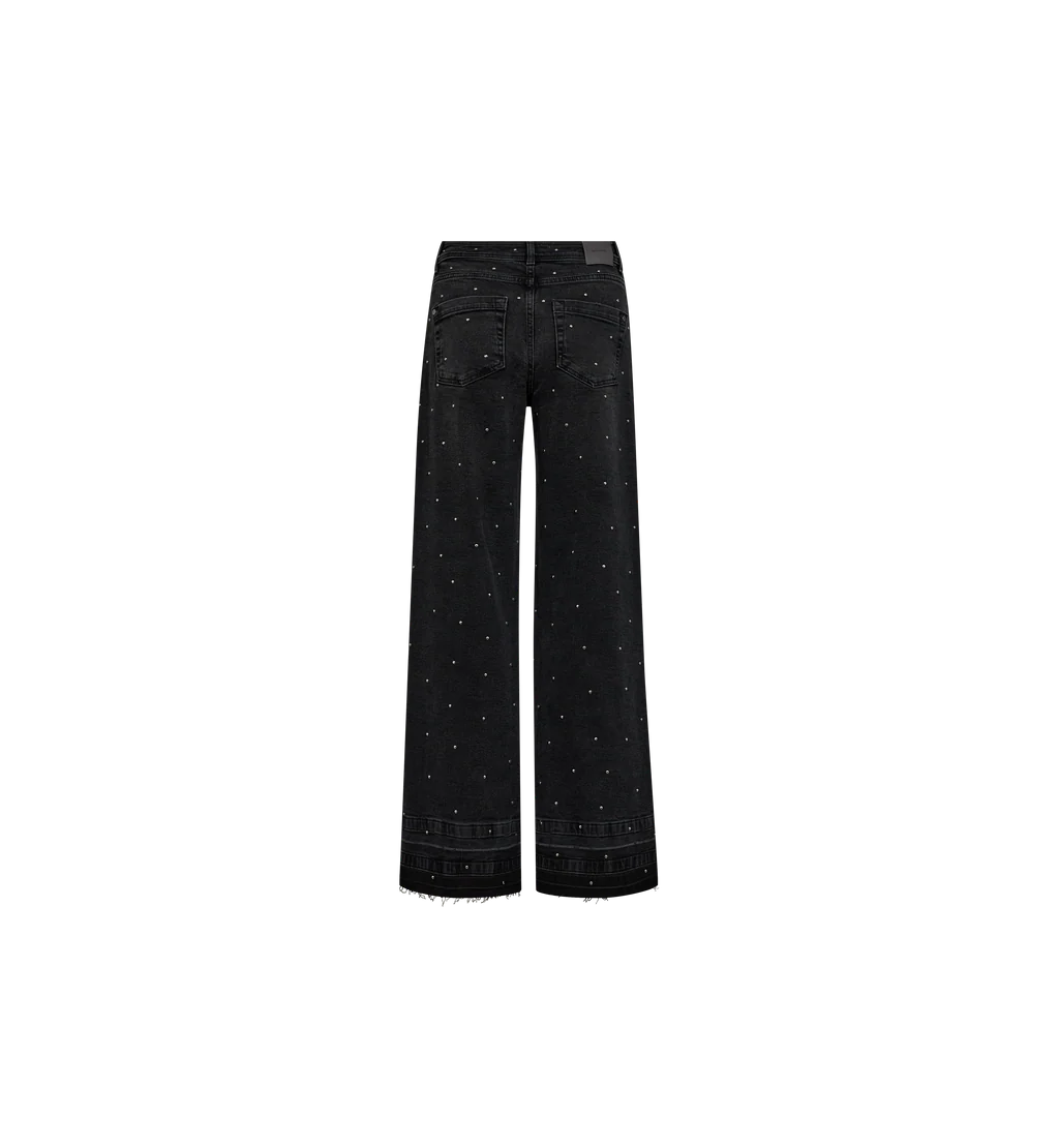 These statement jeans are designed to add a touch of glamour to any outfit. Cut in a flattering high-rise with a trendy wide-leg fit, they are adorned with chic stud embellishments for an elevated look. Style them with a sleek blouse or a cosy knit to effortlessly balance edgy and sophisticated vibes.