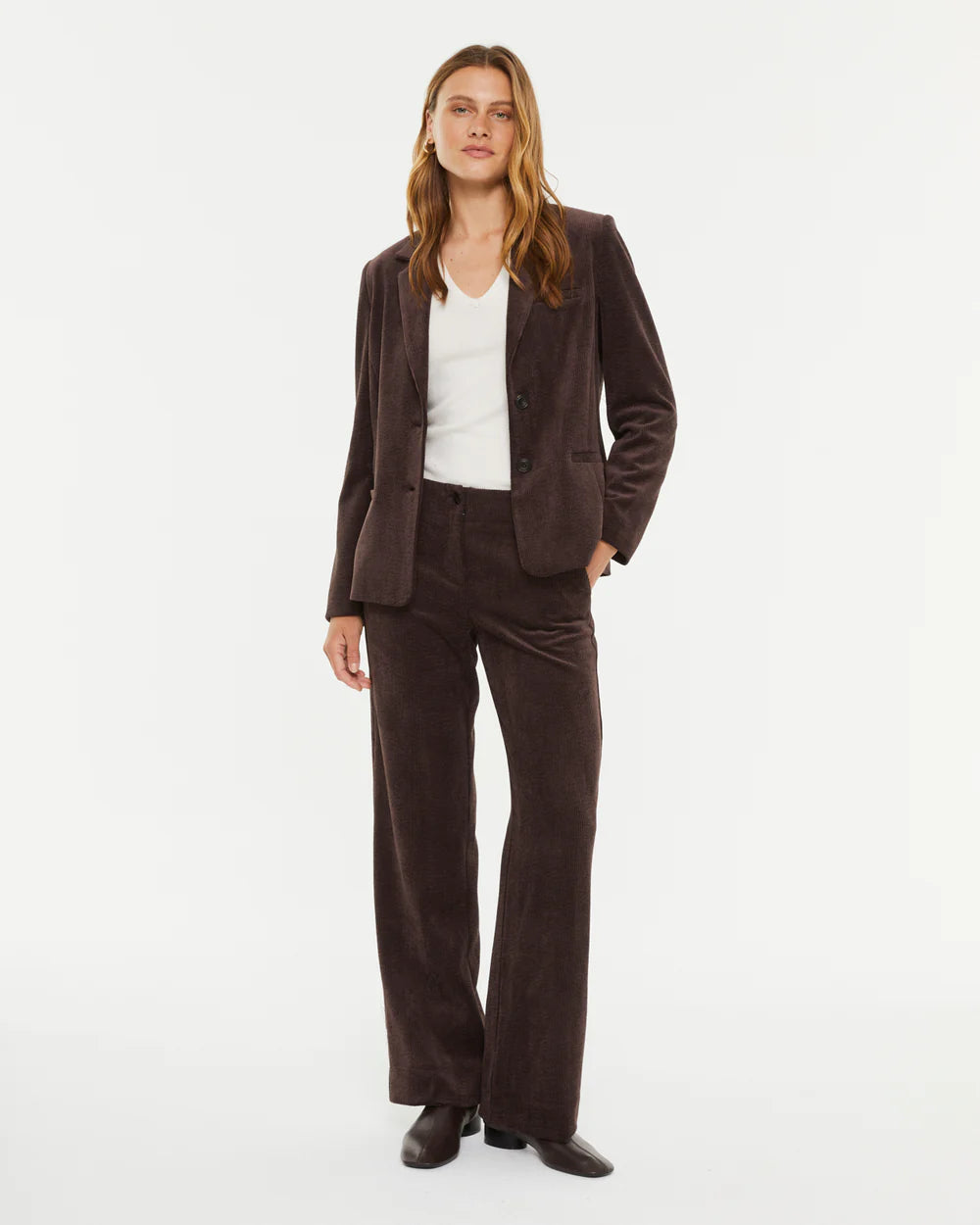 Basic corduroy blazer with a lapel collar and two-button front closure. Welt pockets on the front and a welt pocket for a handkerchief. Lined with viscose voile. This is the perfect blazer to wear all season long. Regular fit.