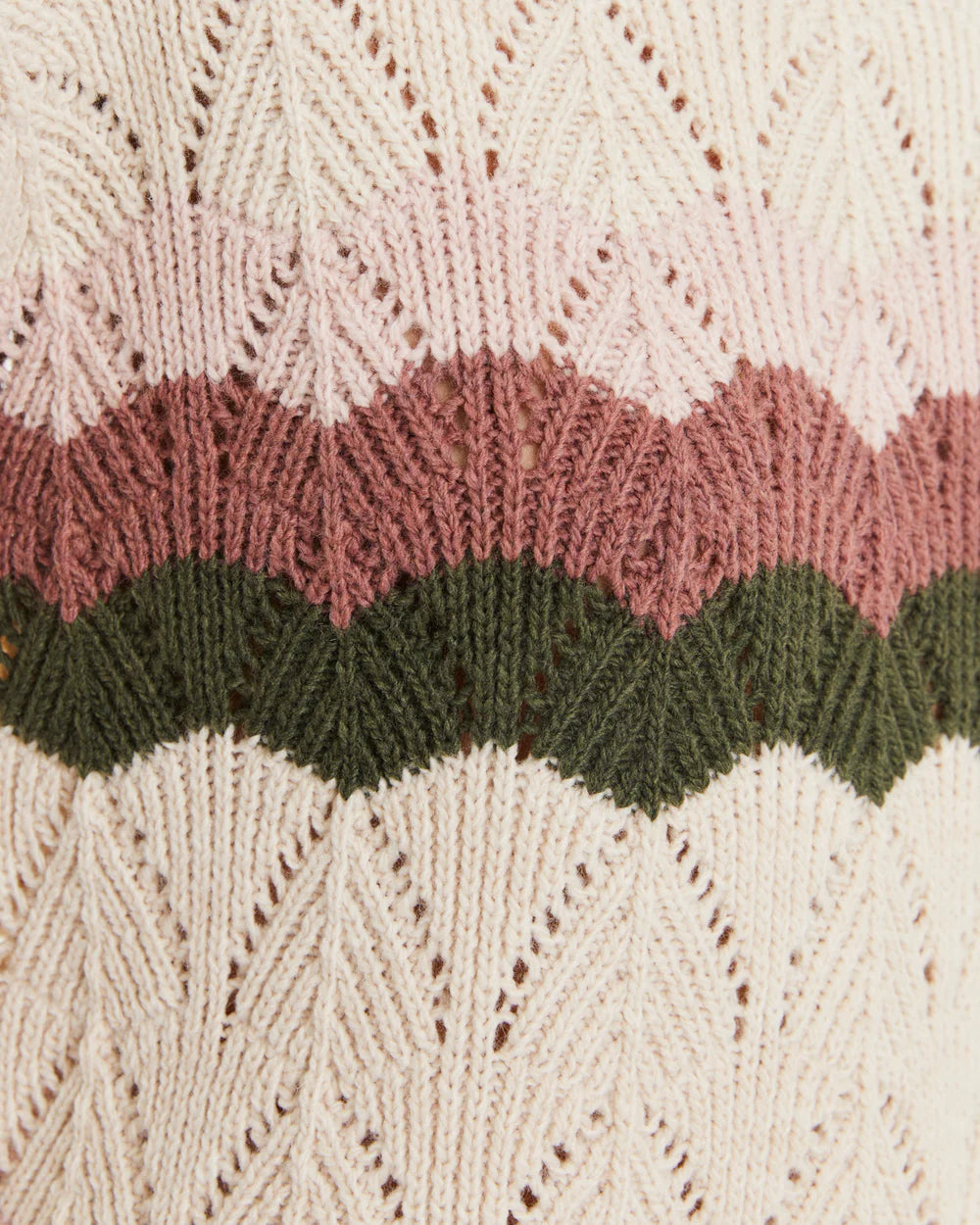 Long-sleeved striped openwork sweater with a round neckline. Ribbed construction on the neckline, cuffs, and hem. Regular fit.