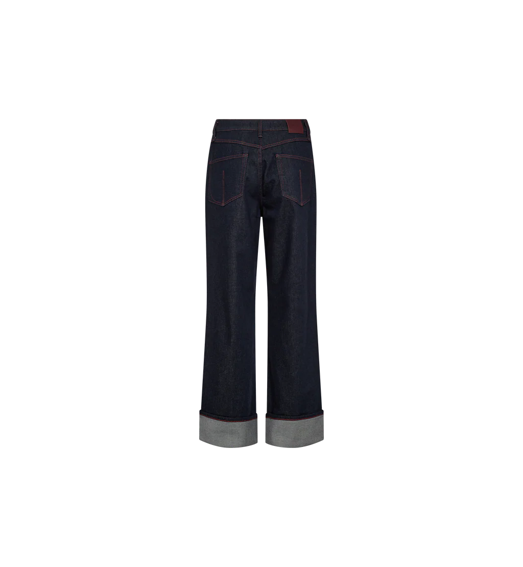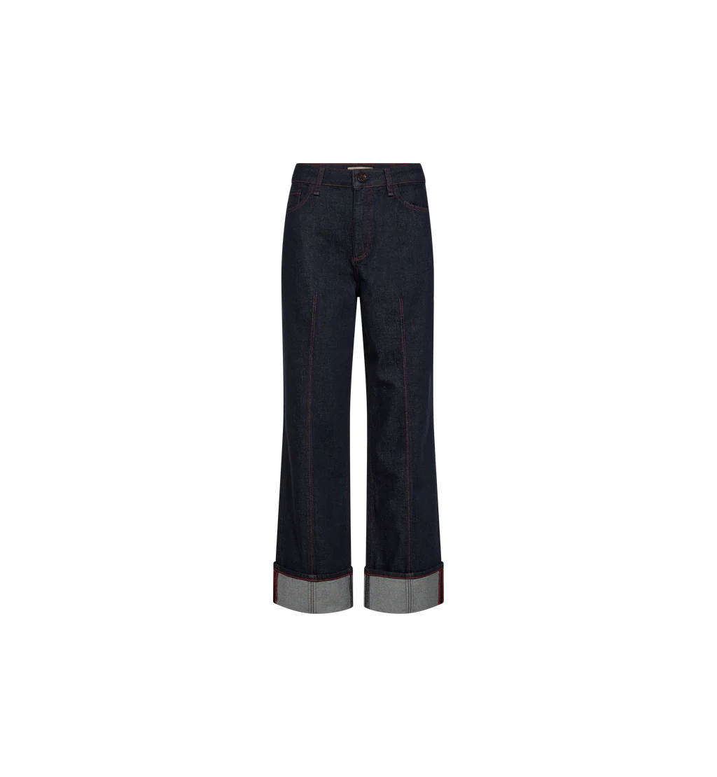 These high-rise jeans are designed in a classic straight fit with a modern twist, featuring a bold turn-up hem for a statement look. Extraordinary stitching details add a cool, edgy touch, while the signature leather badge at the back completes the design with a refined finish. Style them with a sleek blouse or a relaxed knit for an effortlessly chic outfit.