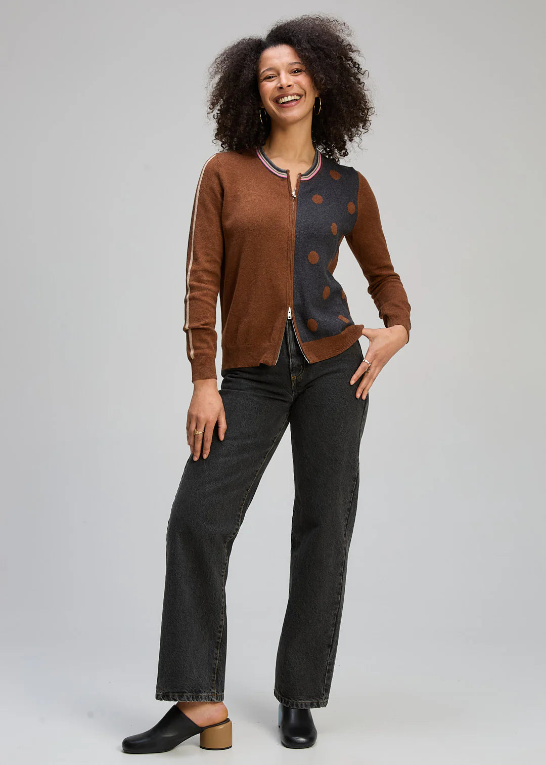 Crafted from a premium blend of 95% cotton and 5% cashmere, the Stripe Spot Zip Up delivers exceptional comfort with a luxurious touch. The natural breathability of cotton keeps you cool throughout the day, while the addition of cashmere elevates softness and provides subtle warmth. The zip-up design offers versatile layering options, making it an essential piece for any wardrobe. Perfect for those who appreciate quality fabrics and timeless style.